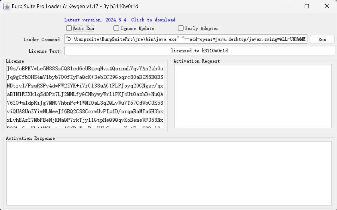 Run后将License中的内容放在bp中,之后选择手动激活。 - 之后就是重中之中,如何优雅使用burp